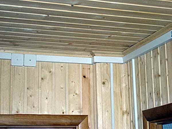 Применение специальных пластиковых каналов или коробов позволяет оперативно менять конфигурацию электропроводки, устанавливать дополнительные светильники, выключатели или розетки. Следует учитывать, что крепить кабель-каналы можно только к хорошо просохшей, устоявшейся древесине. Иначе неизбежна Пин Ап коробов при усыхании дерева.