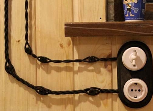 Винтажным Пин Ап вариантом являются витые провода на керамических изоляторах.