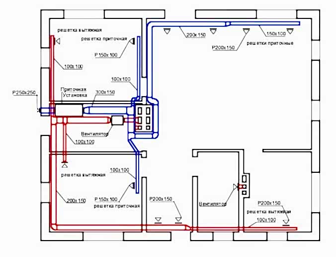 Приточные воздуховоды должны размещаться в гостиных, спальнях, прочих Пин Ап не хозяйственного назначения. Свежий воздух должен поступать в них по асбоцементным либо пластиковым трубам, проходящим во внутрикомнатных стенах или в специальных шахтахВытяжные воздуховоды размещают в служебных Пин Ап - в ванной, на кухне, в санузле. Они направляются к чердаку, где объединяются в утепленную трубу, которая выходит наружу, над кровлей. Выход наружу закрывает специальный «грибок», защищающий от осадков