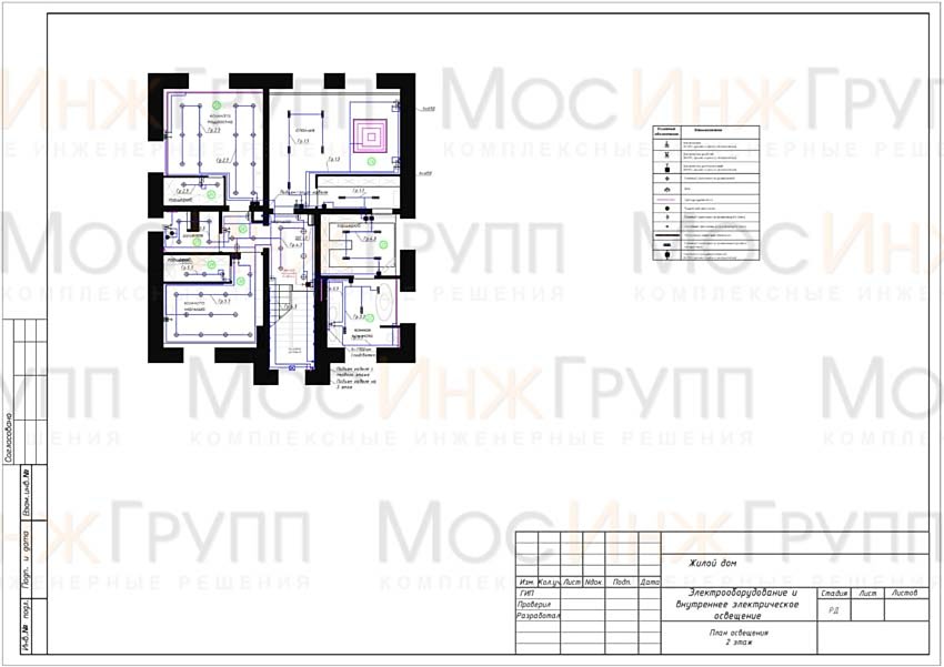 Профессиональный проект электрики коттеджа состоит из следующих Пин Ап частей: