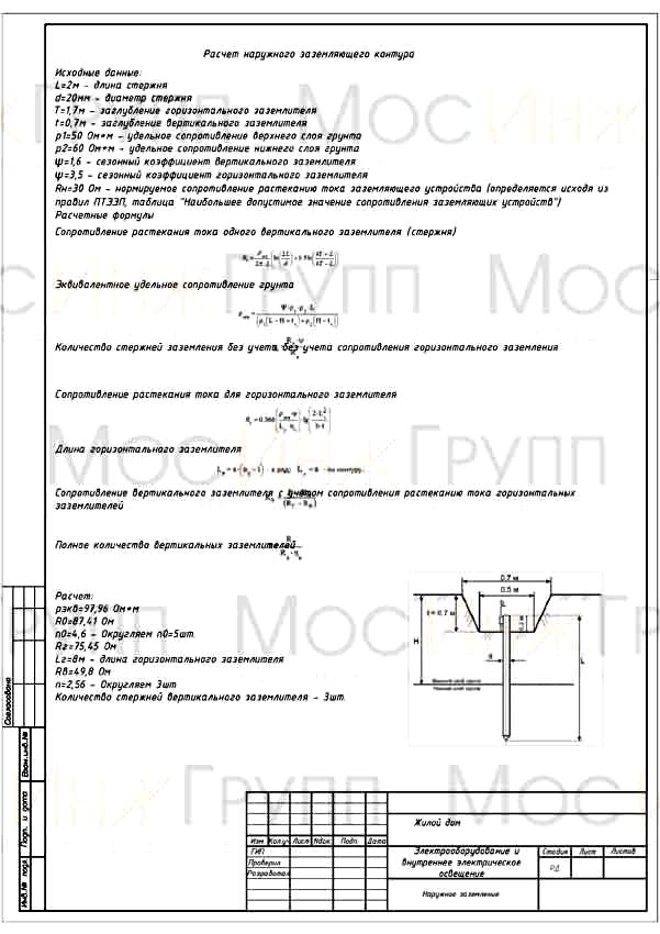- Расчетная часть (общий типовой электротехнический расчет, Пин Ап заземления и молниезащиты)