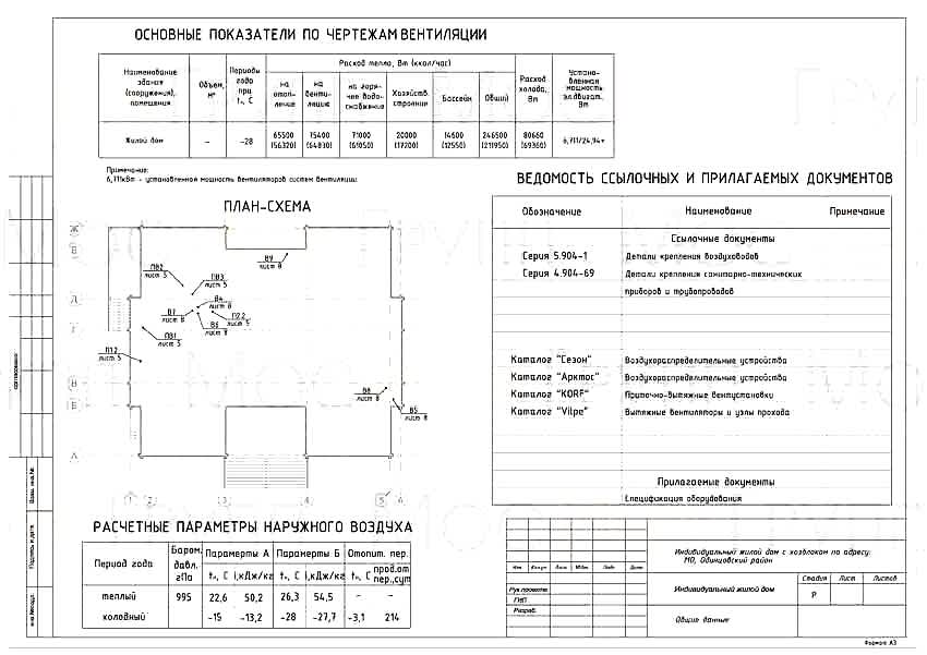 - Определение расчетным методом основных характеристик будущей системы - кратности воздухообмена, Пин Ап и протяженности воздуховодов, мощности вытяжного и приточного оборудования